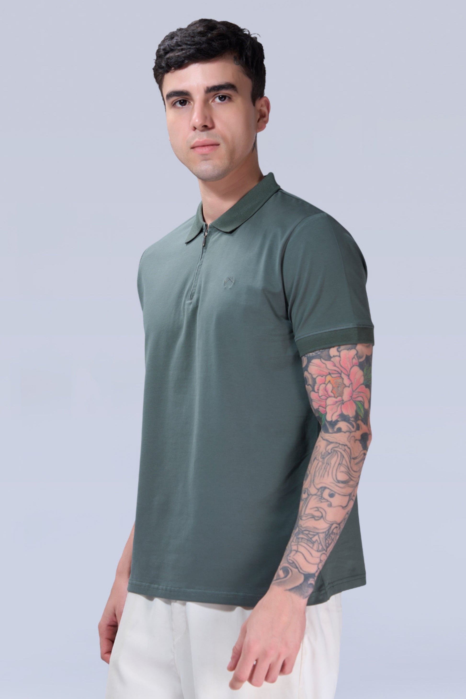 Olive Green Zipper Polo